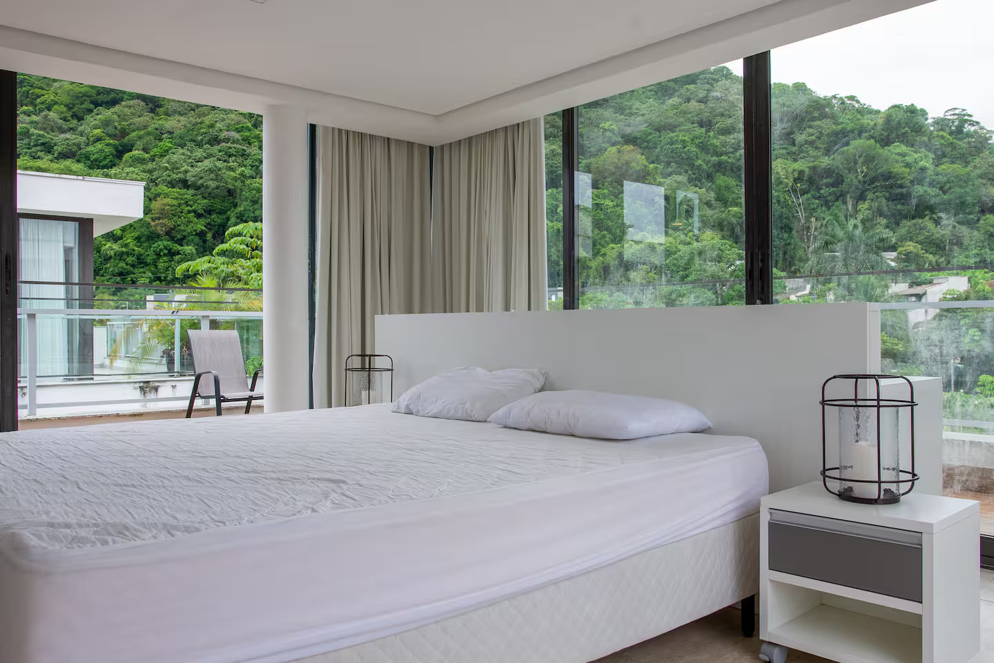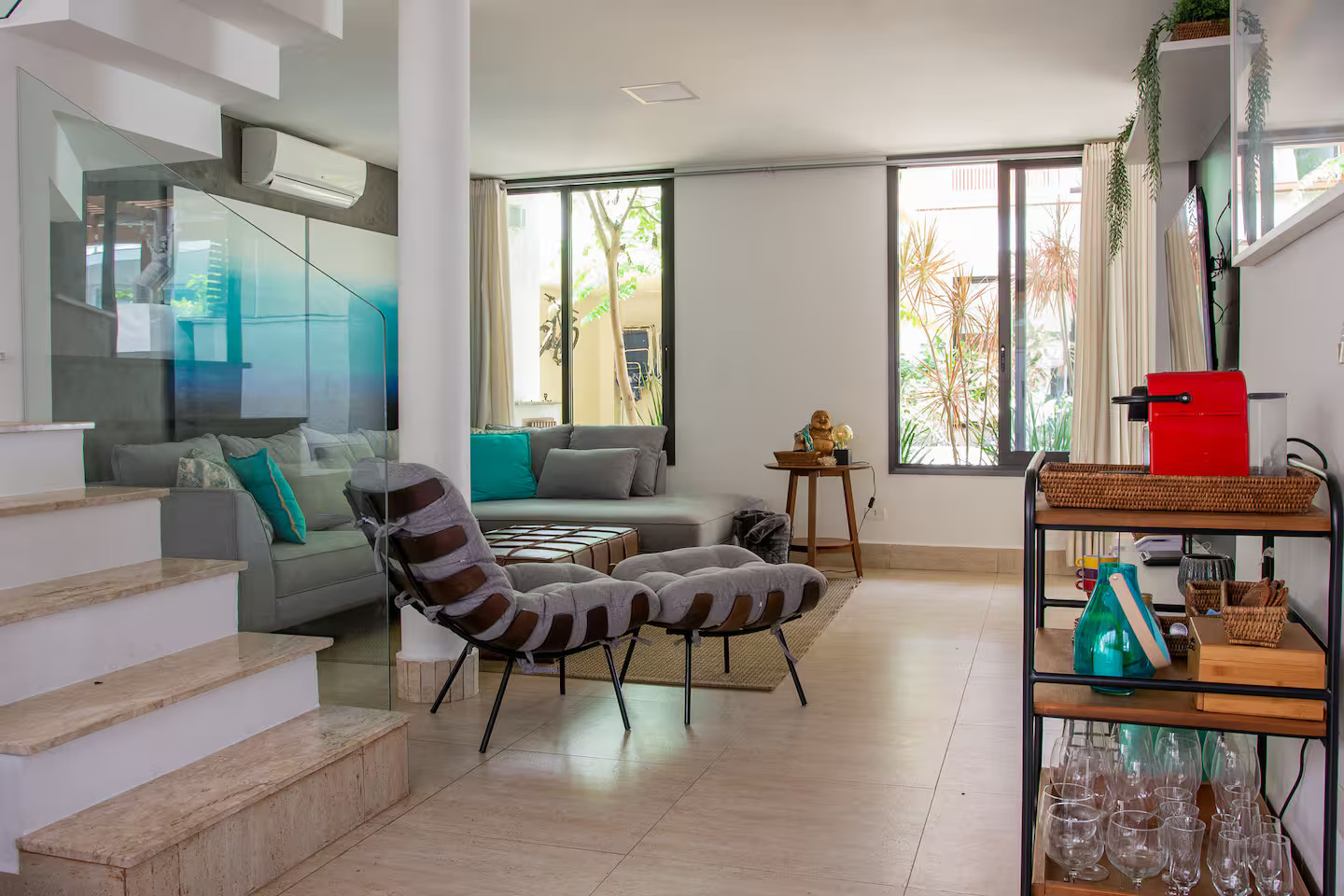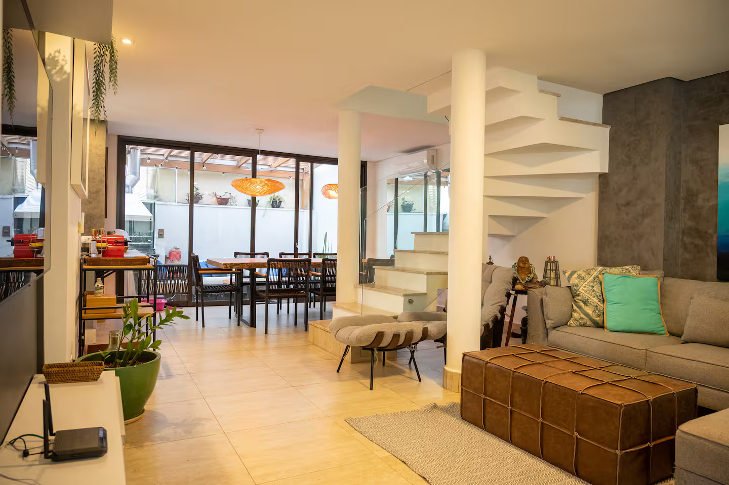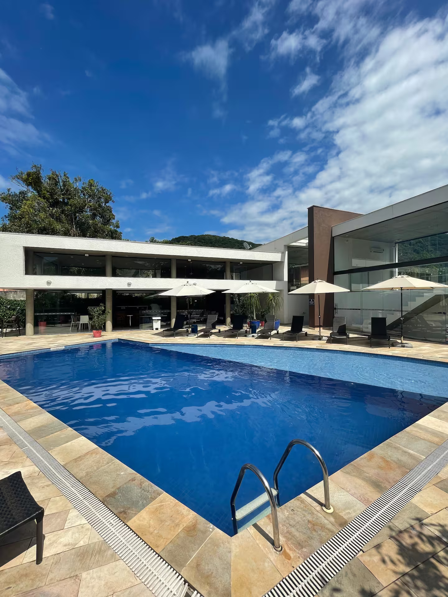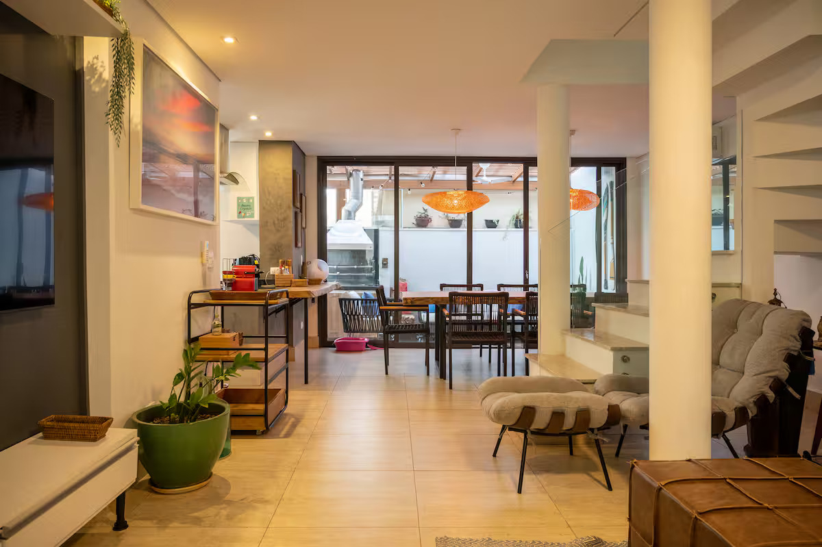 A casa conta com 5 quartos (3 suítes), todos com ar-condicionado, além de amplas salas climatizadas.