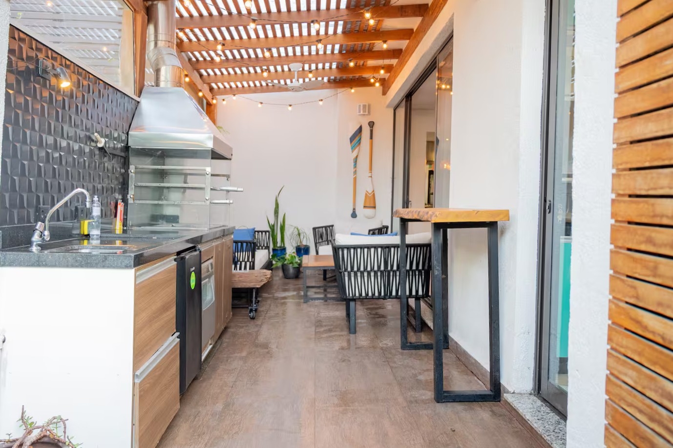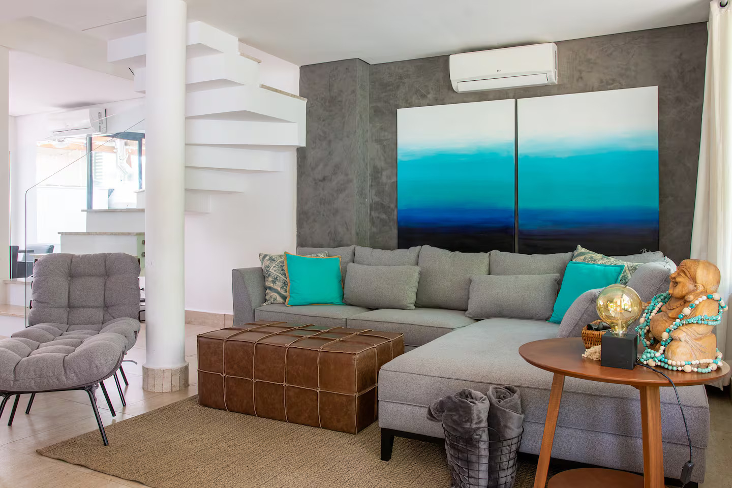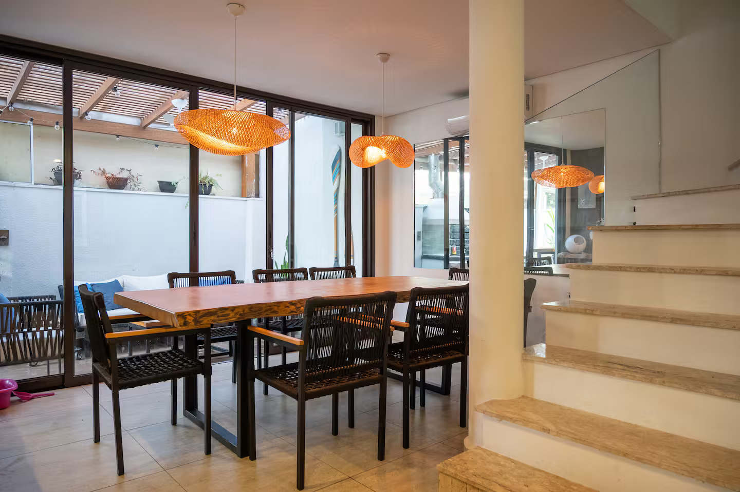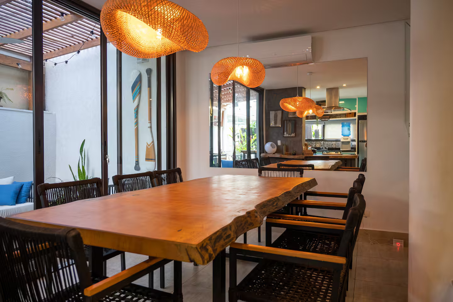 A casa conta com 5 quartos (3 suítes), todos com ar-condicionado, além de amplas salas climatizadas.