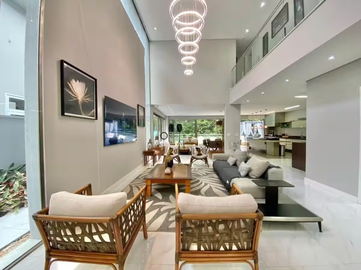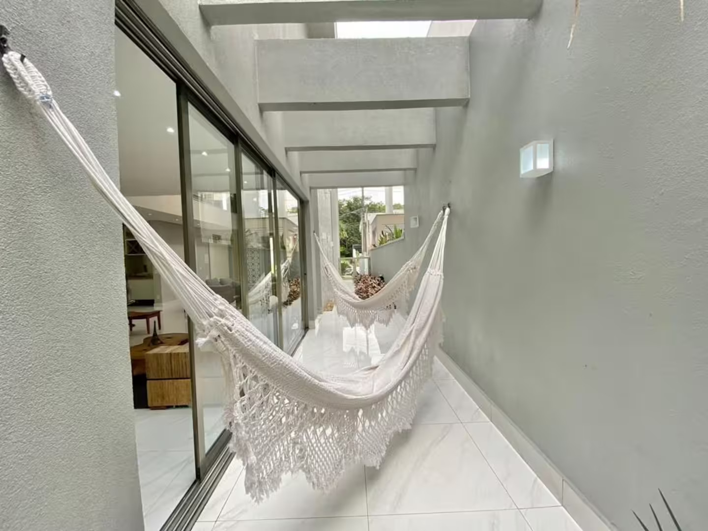 Desfrute de uma casa espaçosa com piscina privativa, churrasqueira, área gourmet, garagem para 5 carros e duas redes para relaxar. A academia fica em frente à casa. Localizada em módulo tranquilo, com natureza preservada e segurança 24h.