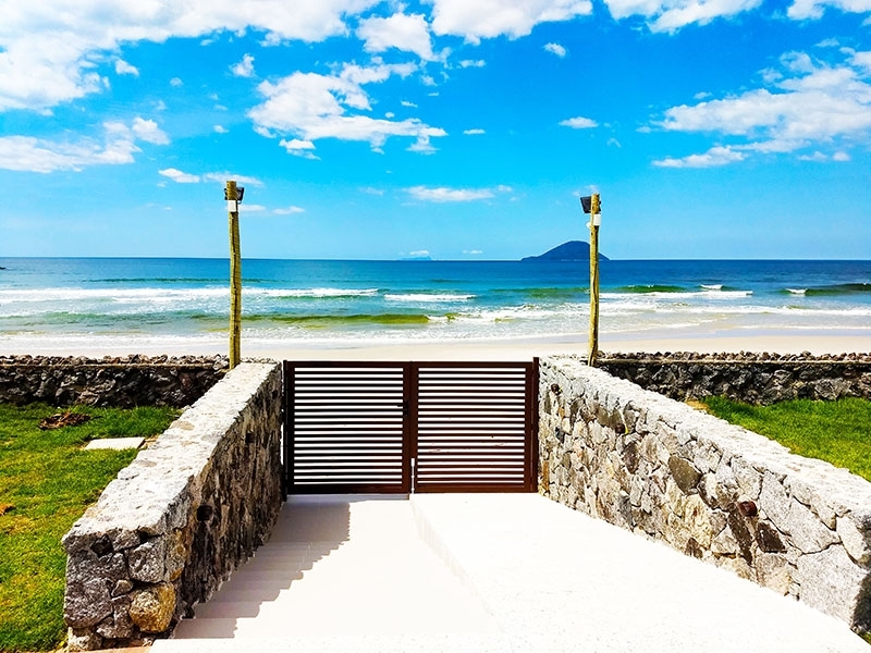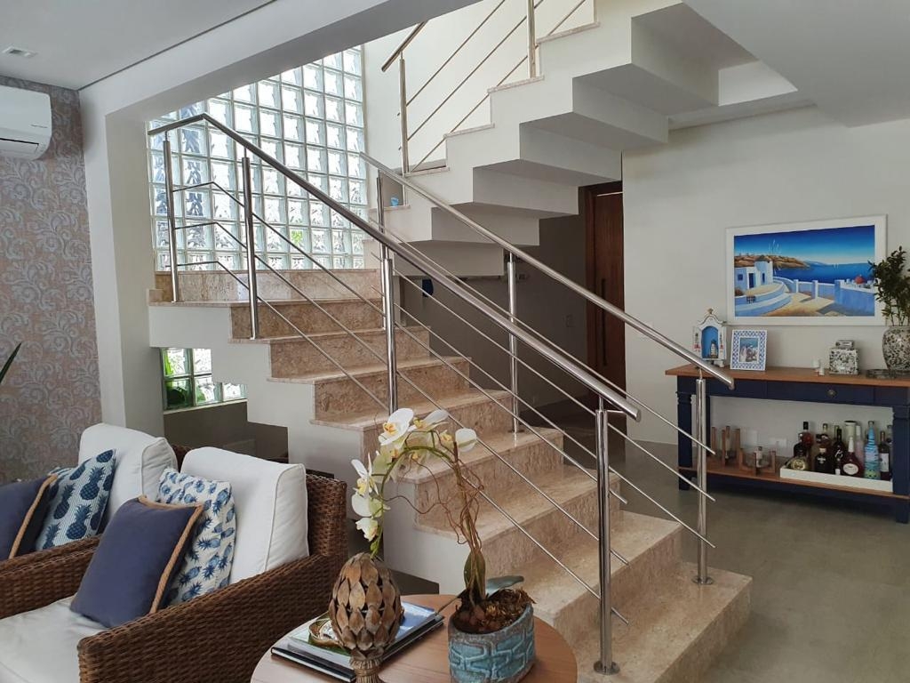 O condomínio é pé na areia com saída direta para a praia, mas a casa não é localizada frente ao mar.