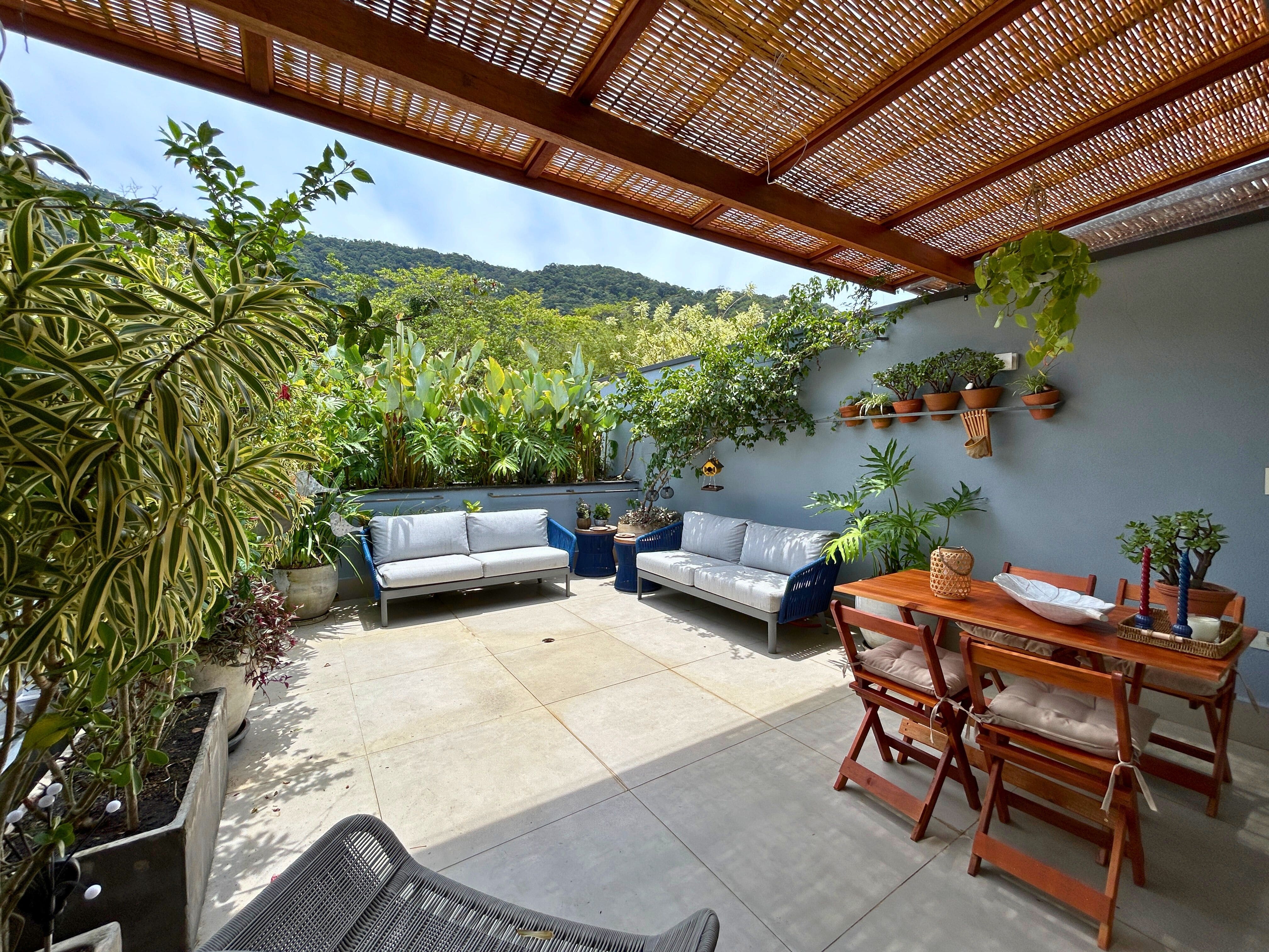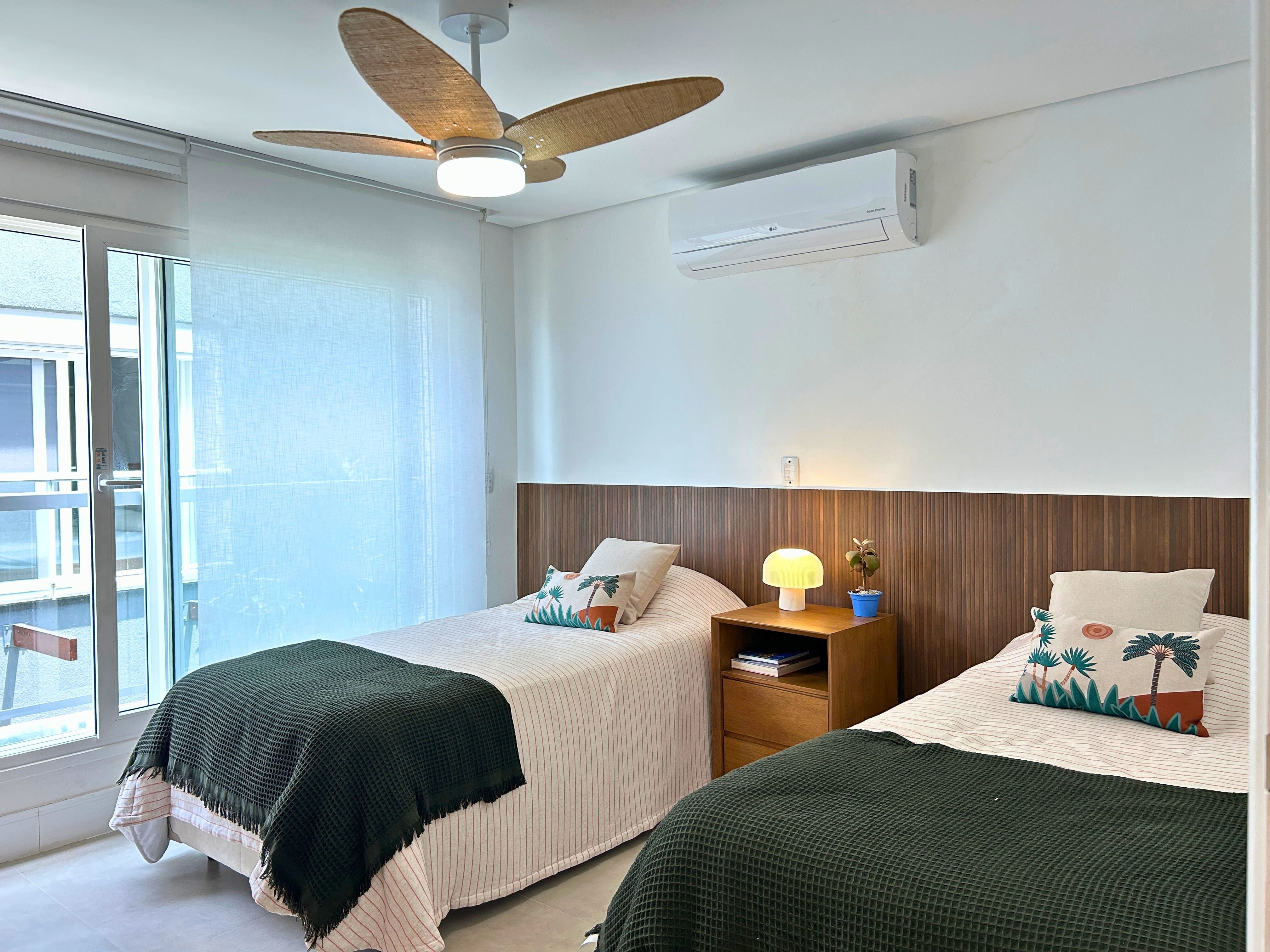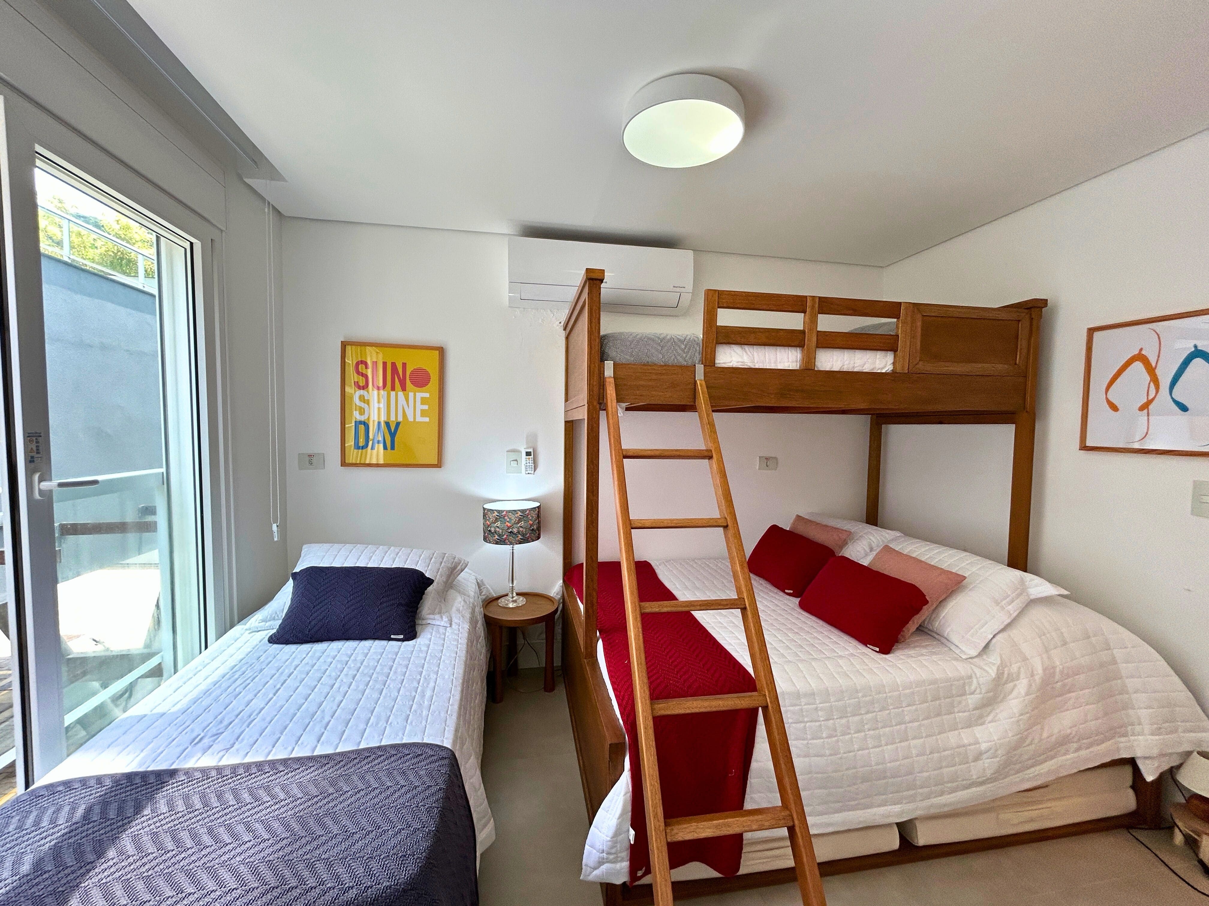Possui 4 suítes, sendo uma com vista para o mar, todas com ar condicionado.