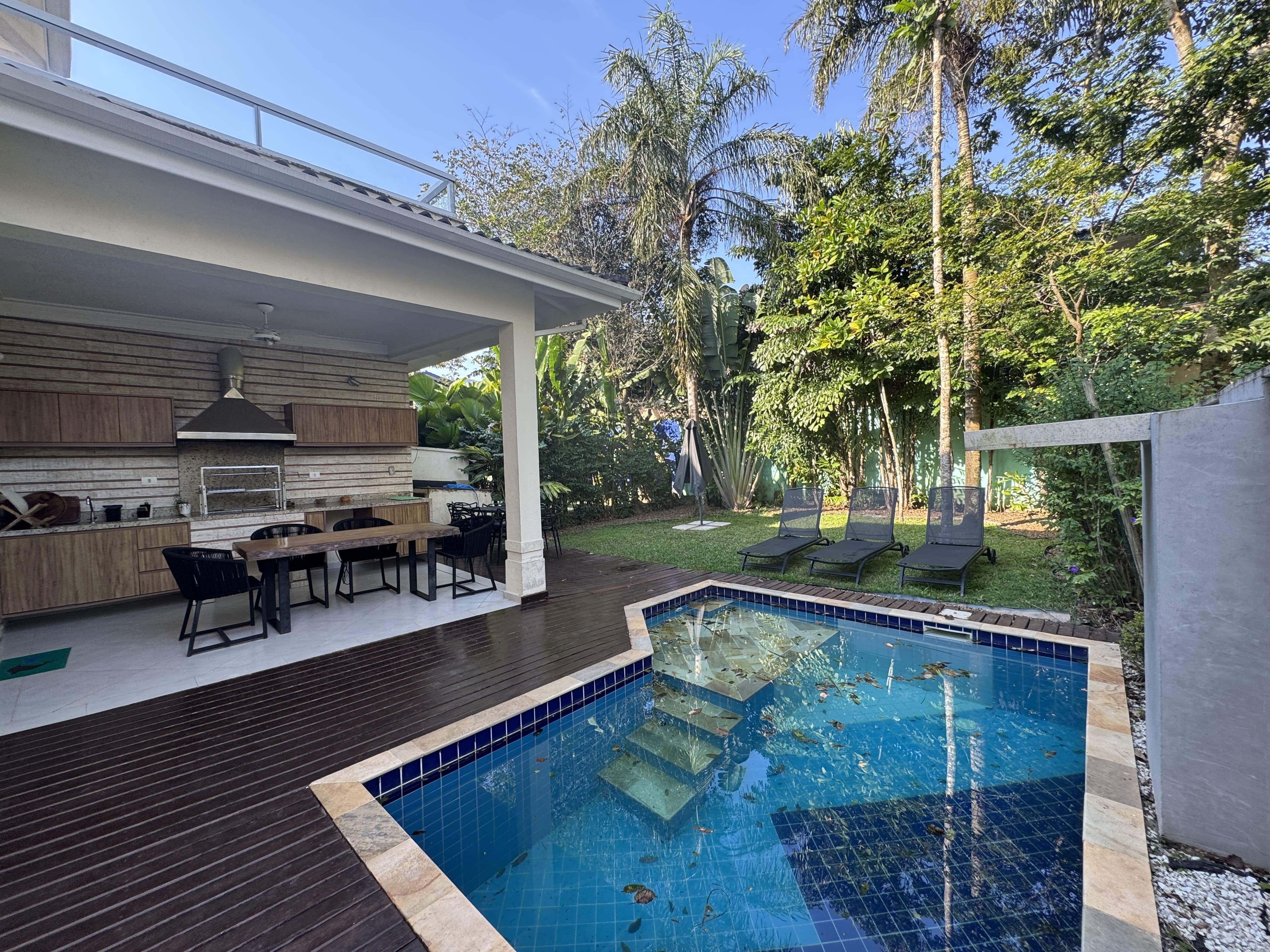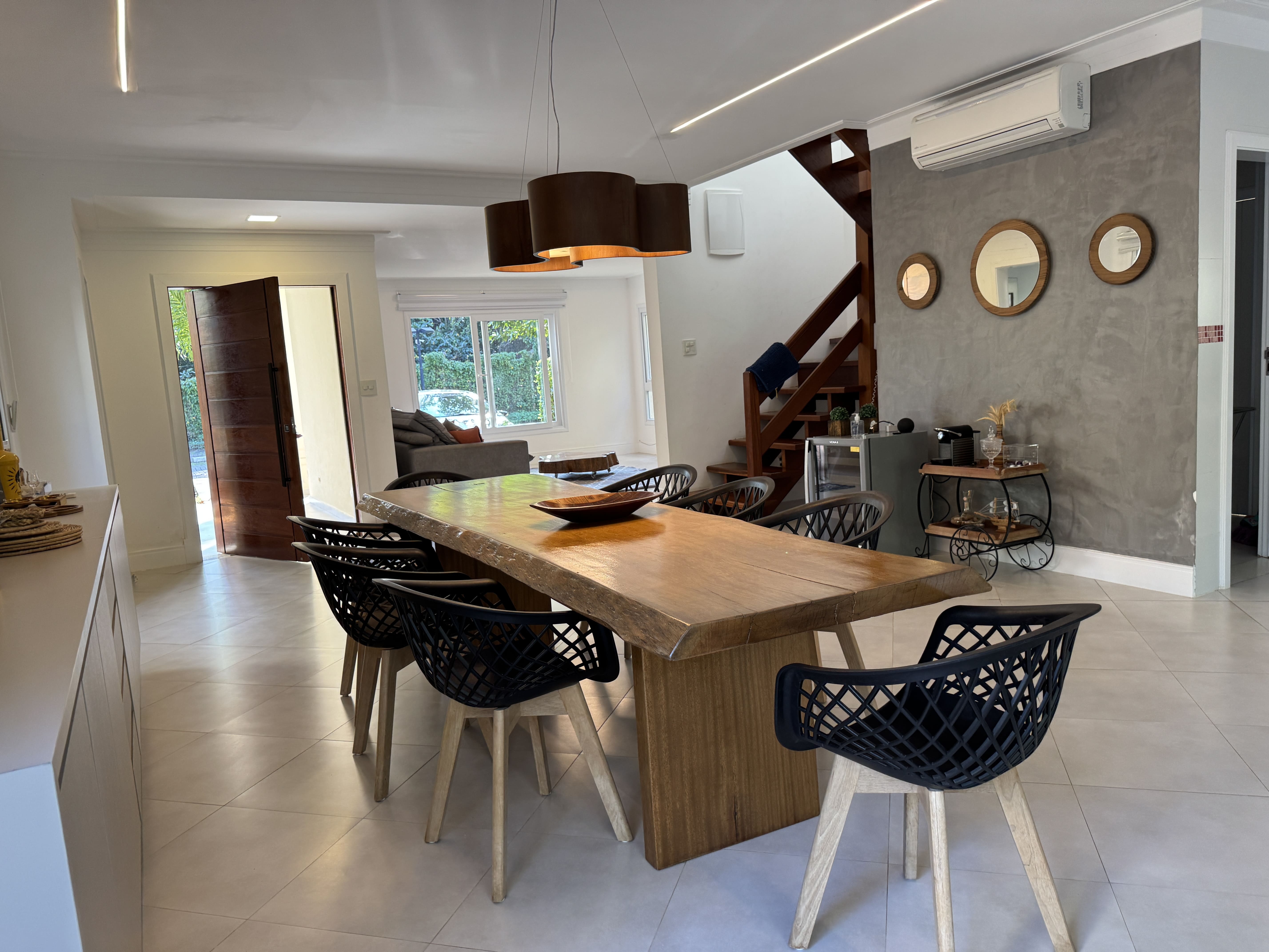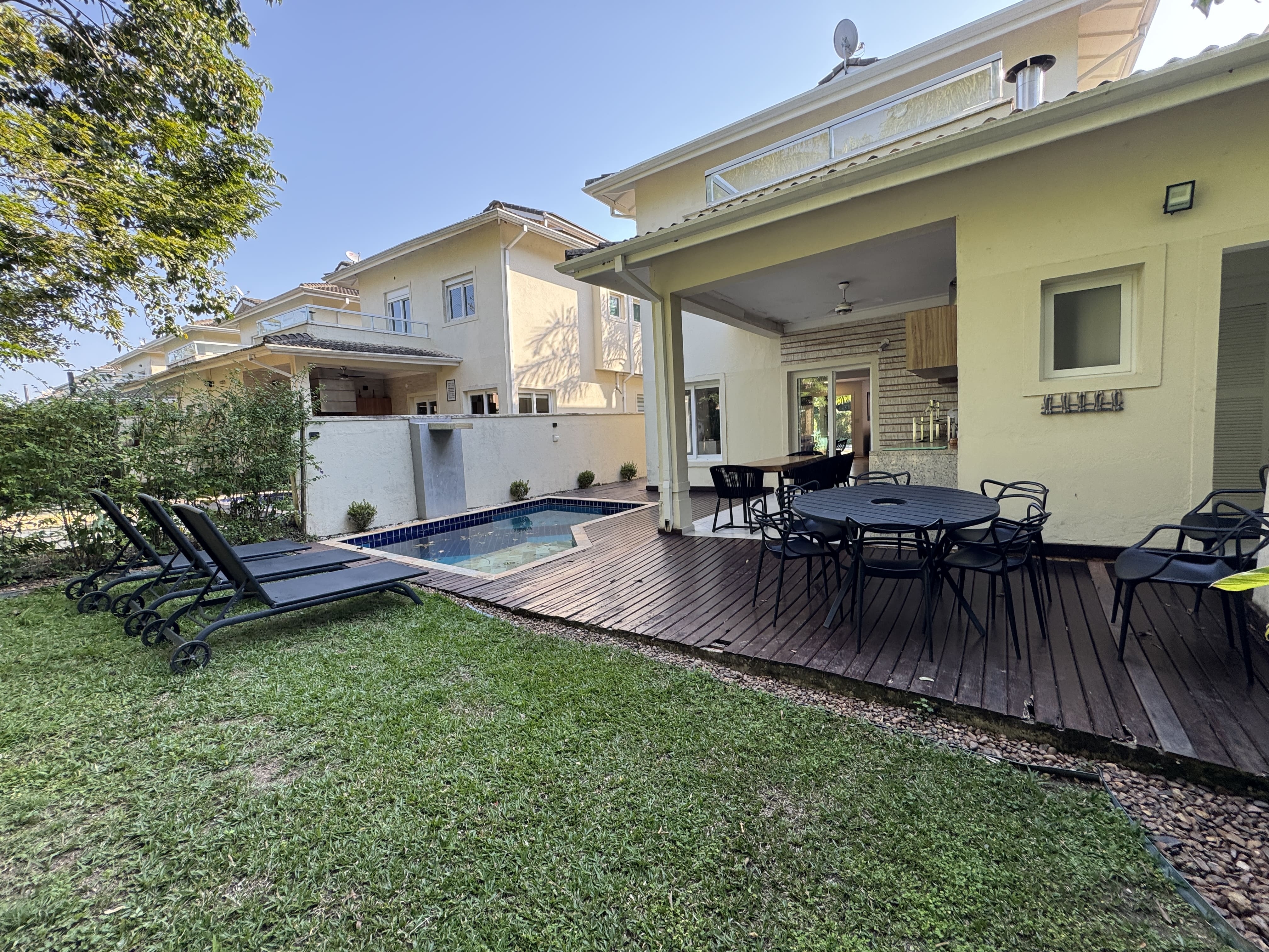 Casa espaçosa, confortável e com total privacidade em condomínio seguro com portaria 24h. São 4 suítes com ar-condicionado. Ambientes amplos com sala de TV (Smart TV e Wi-Fi), cozinha completa e living com adega climatizada.