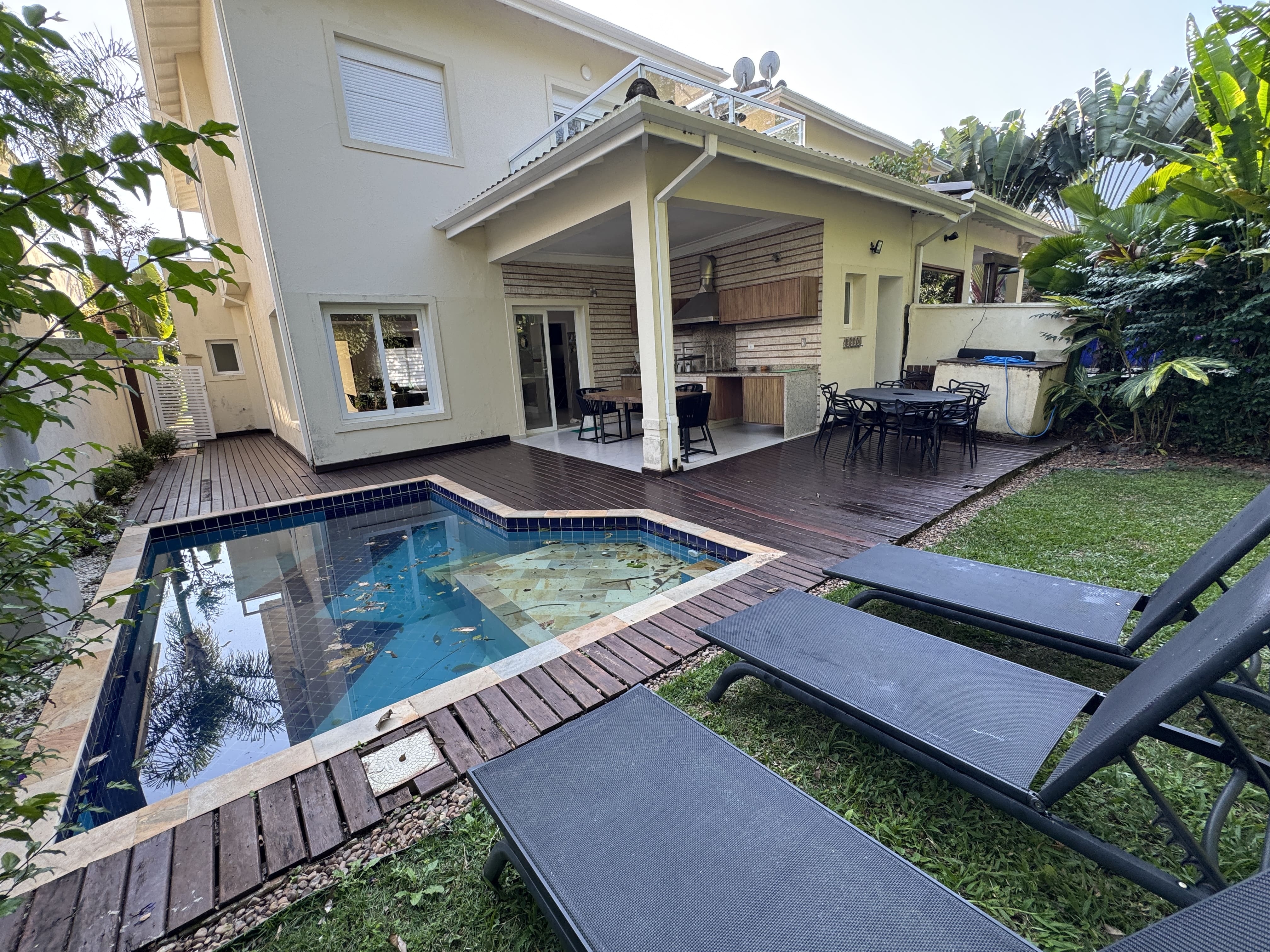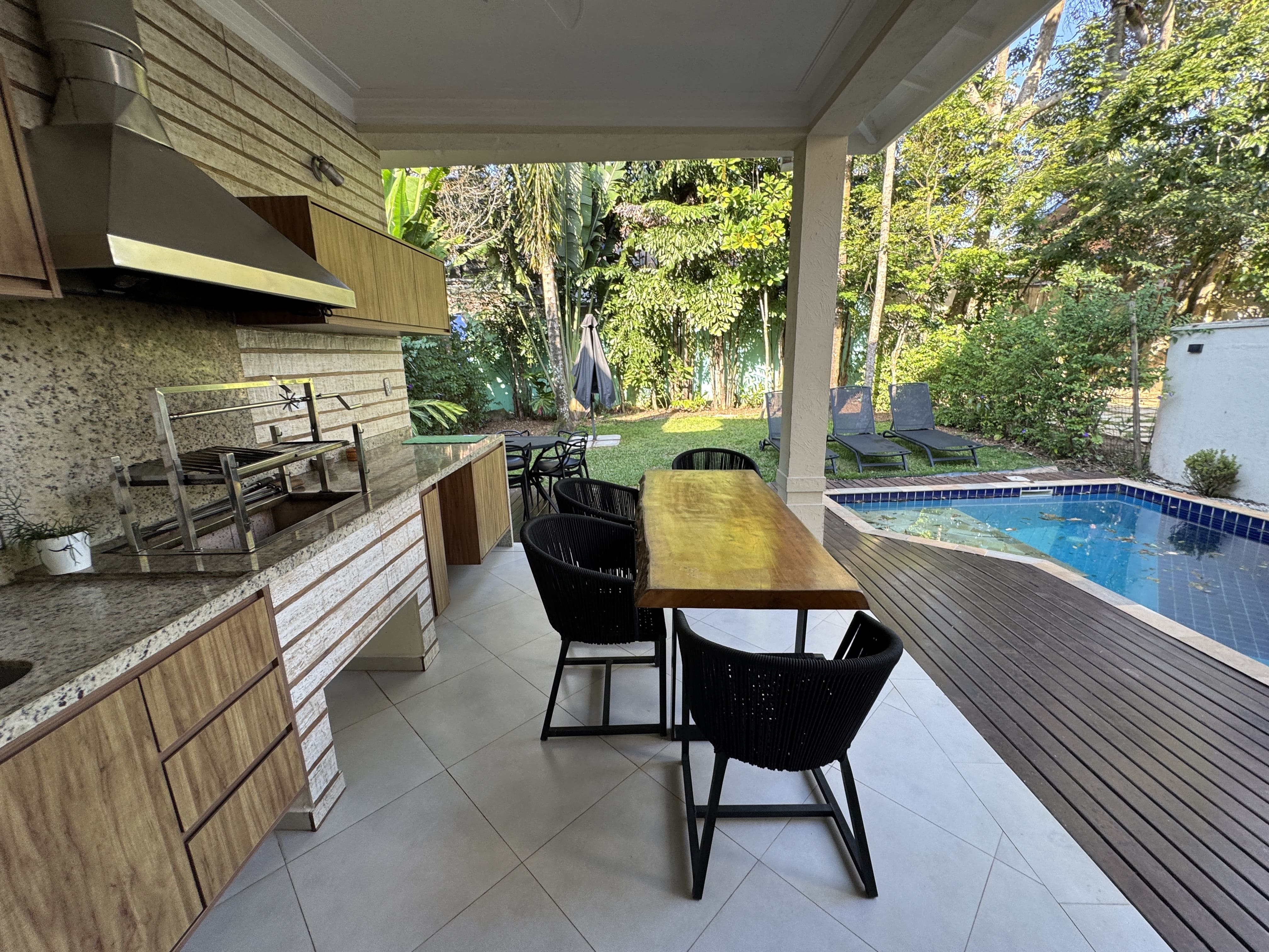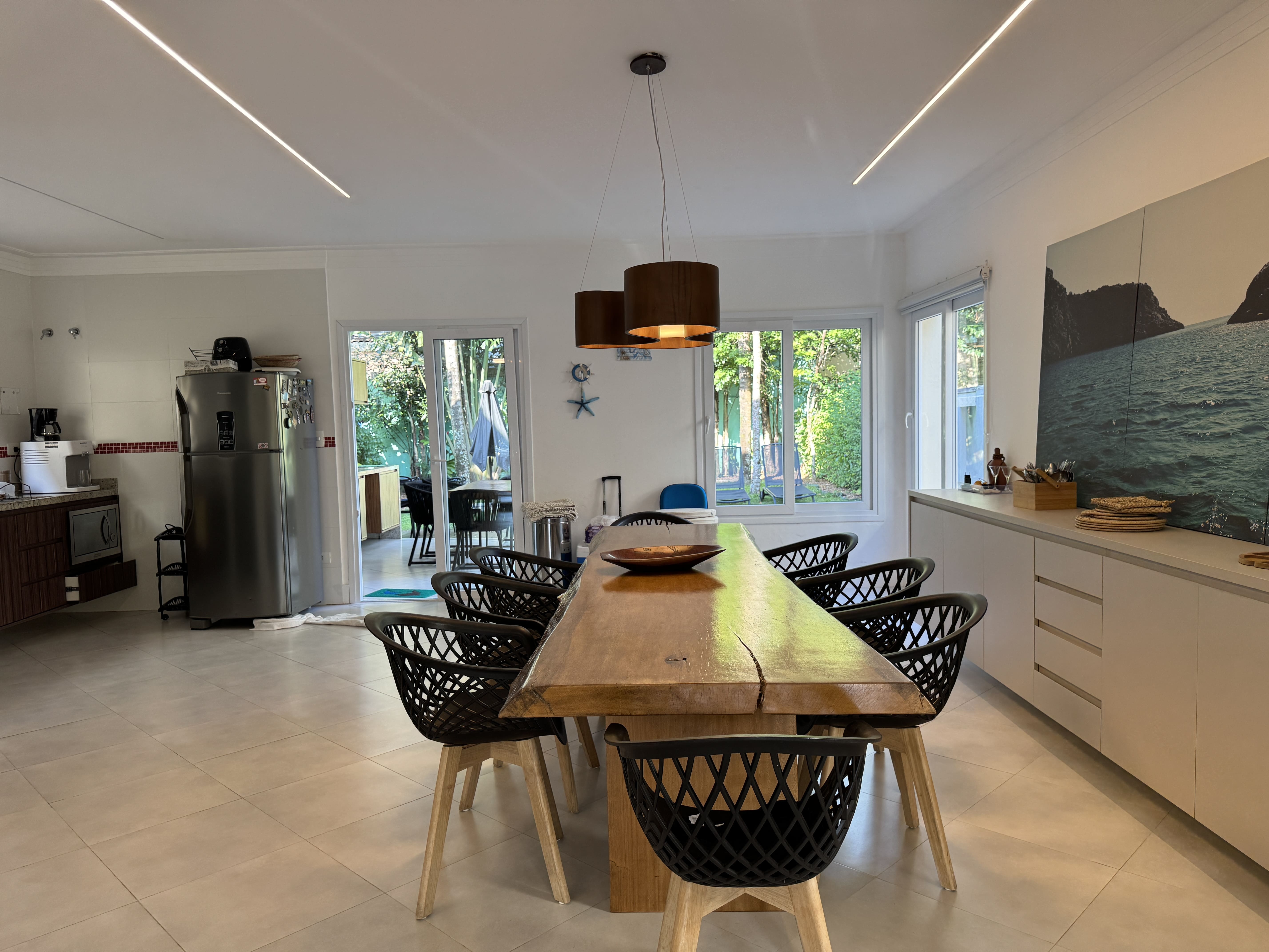 Casa espaçosa, confortável e com total privacidade em condomínio seguro com portaria 24h. São 4 suítes com ar-condicionado. Ambientes amplos com sala de TV (Smart TV e Wi-Fi), cozinha completa e living com adega climatizada.