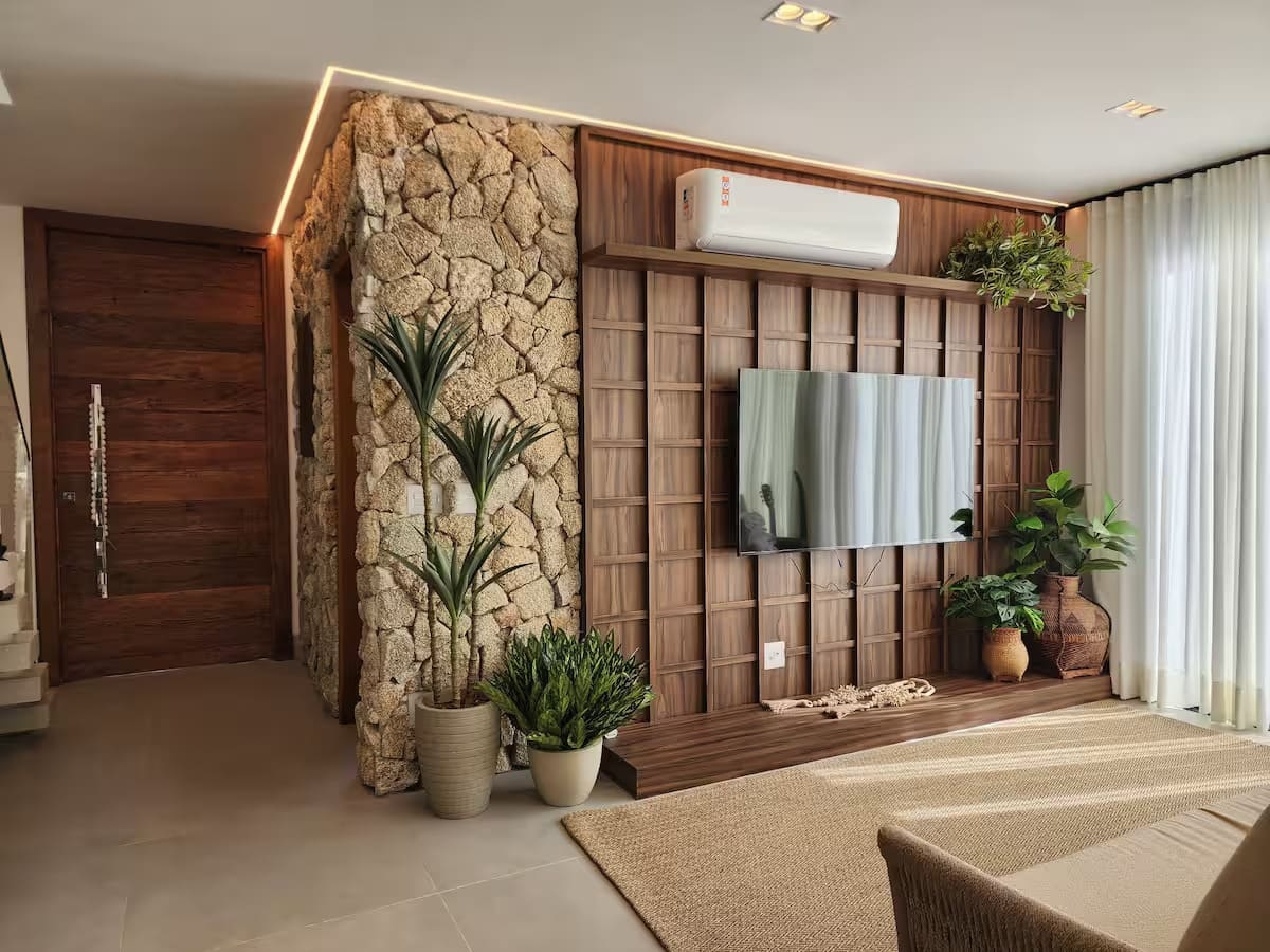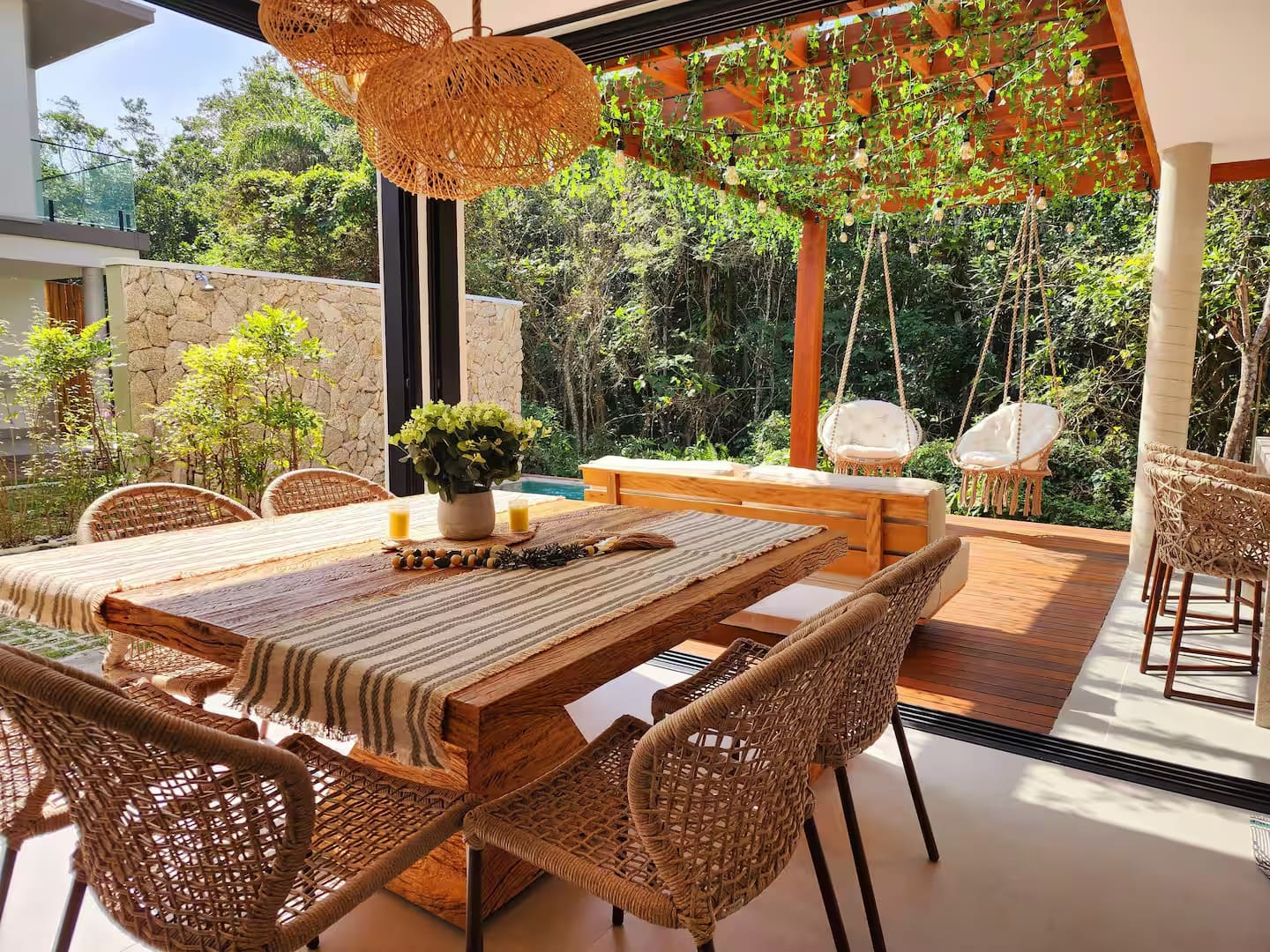 A apenas 5 minutos da paradisíaca praia de Maresias, no exclusivo Canto do Moreira, a casa combina o charme rústico com sofisticação em cada detalhe.