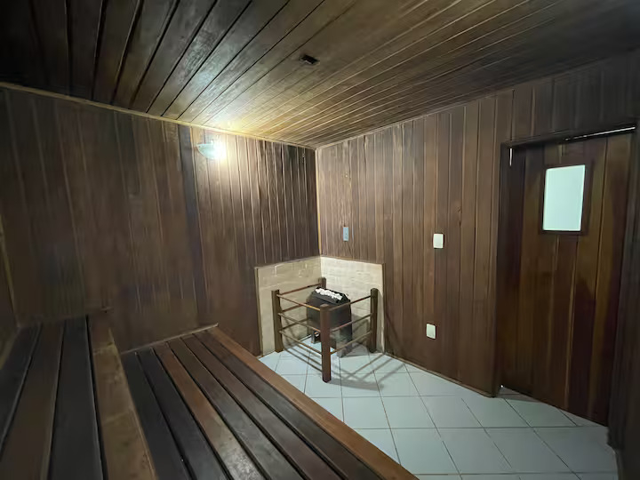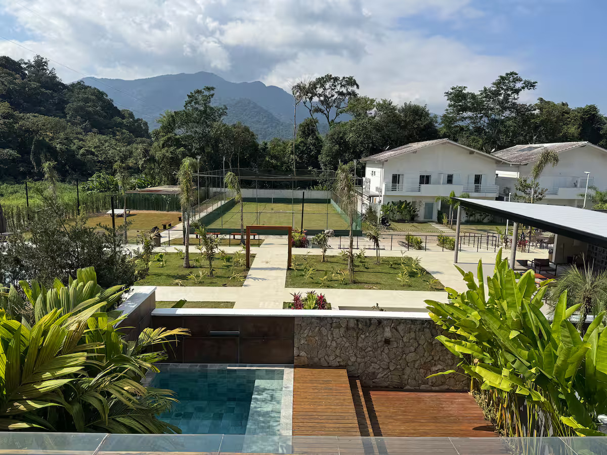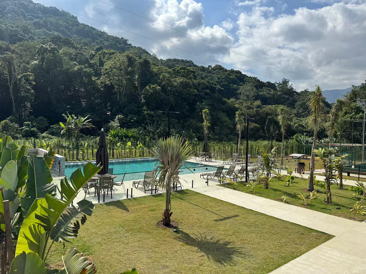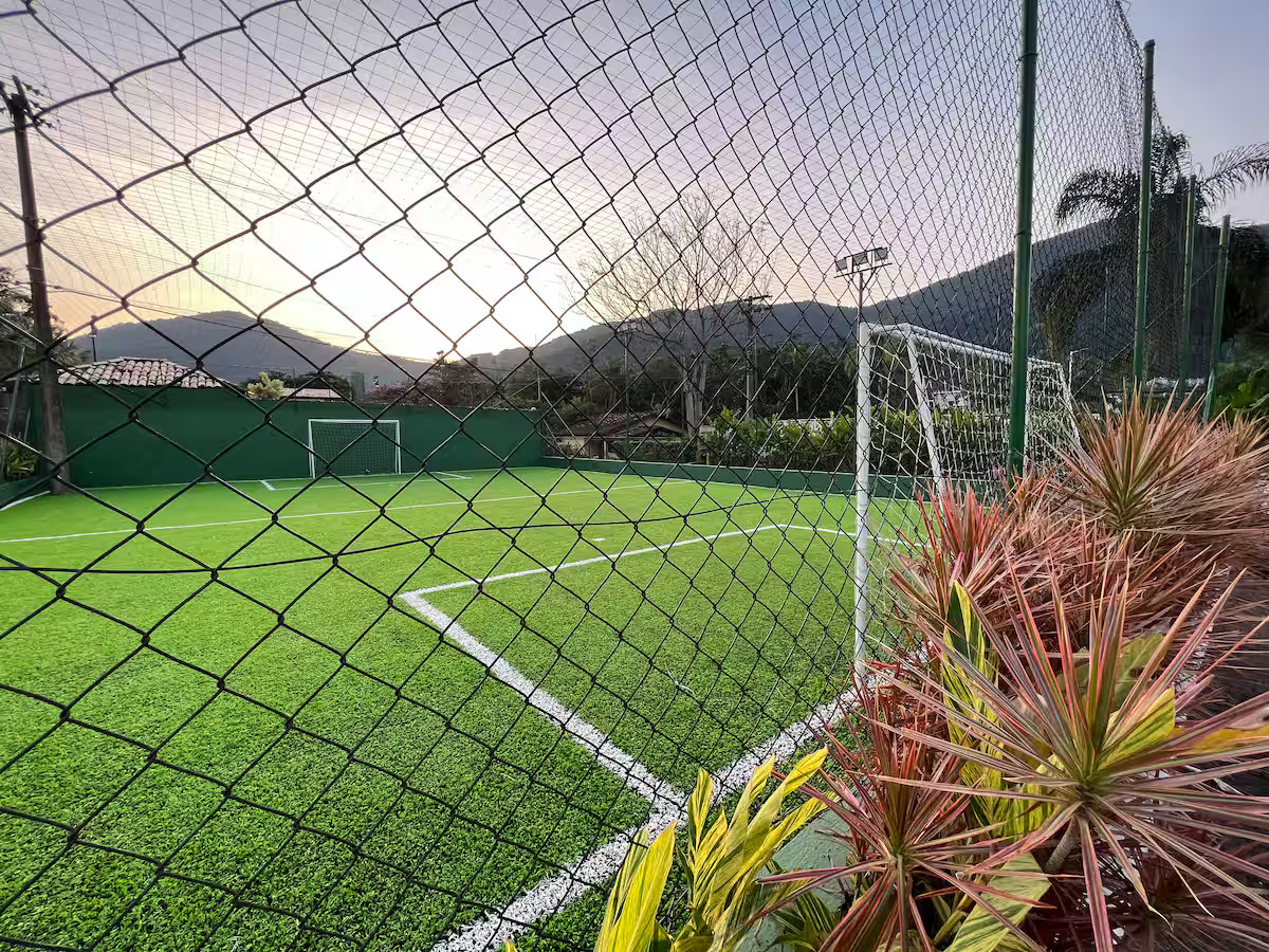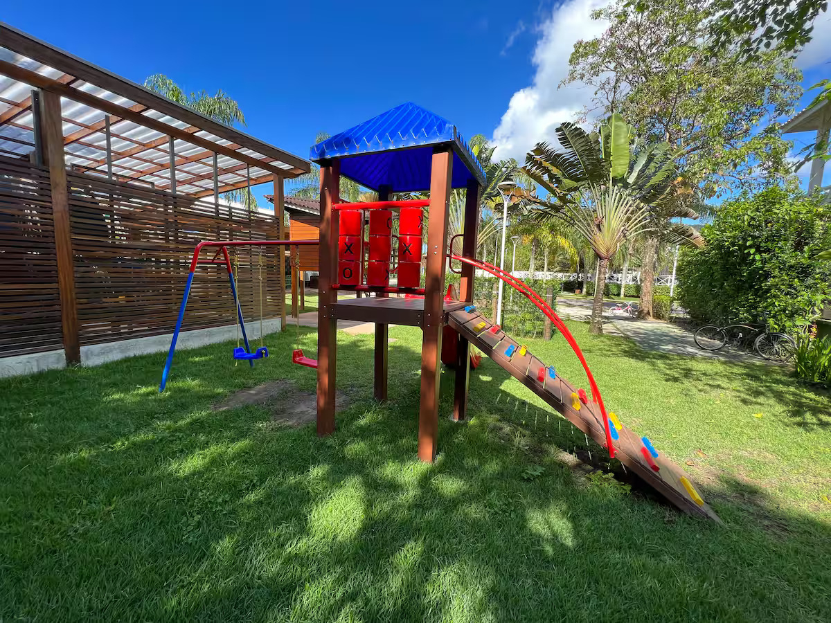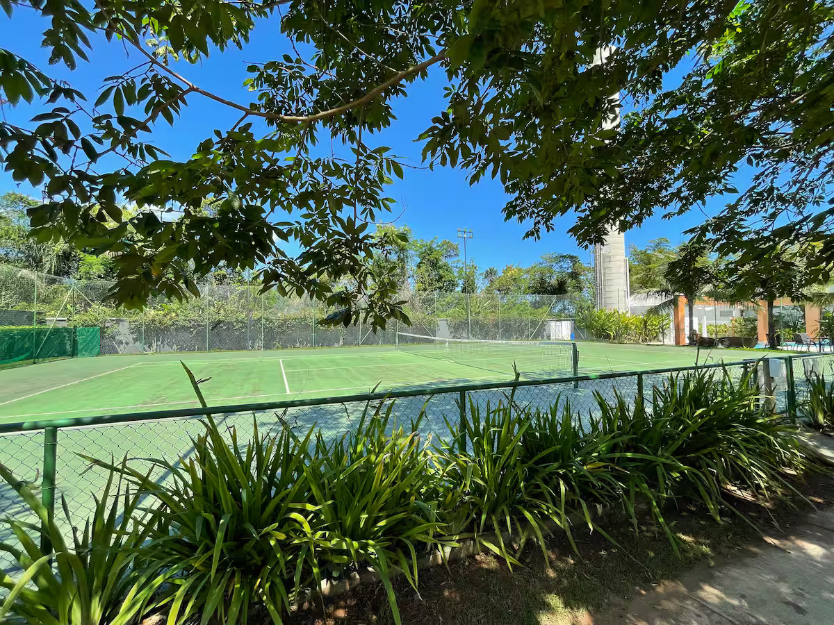 O condomínio oferece 5 piscinas (infantil, com tobogã, semiolímpica, tradicional e com bar/restaurante), quadra de tênis, campo de futebol, academia, sauna, brinquedoteca, salão de jogos e serviço de praia.